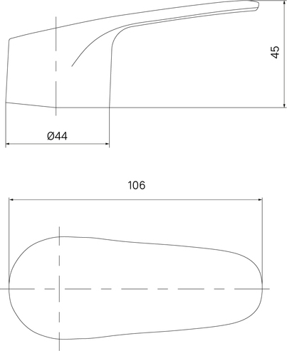 Универсальная сменная ручка для смесителя округлой прямоугольной формы. Подходит для картриджа диаметром 35 мм.
