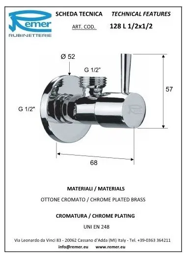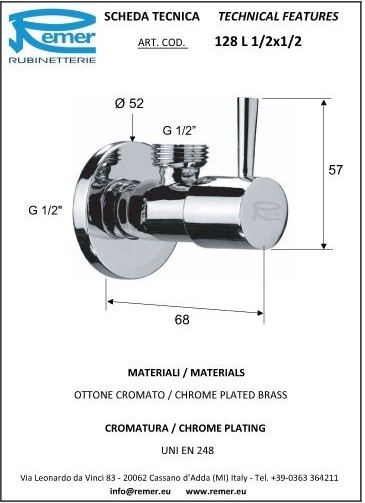 Кран угловой Remer 128L1212NO черный матовый УТ-00160971