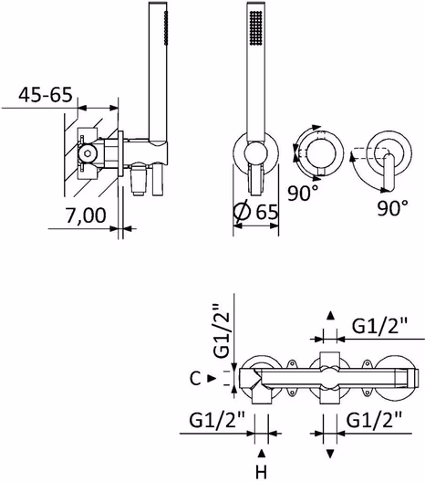 - душевая лейка, держатель душевой лейки, душевой шланг