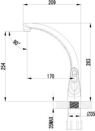 - Высота излива, см:25.4
