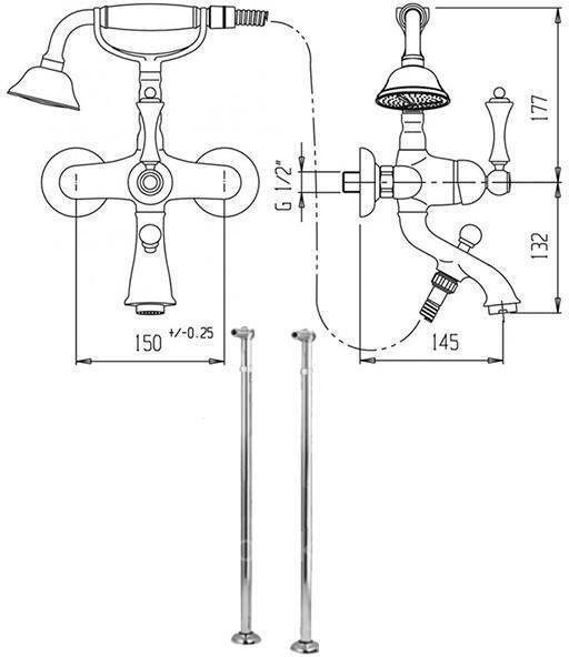Смеситель Cezares Margot, напольный, для ванны, с ручным душем, хром, ручка белая