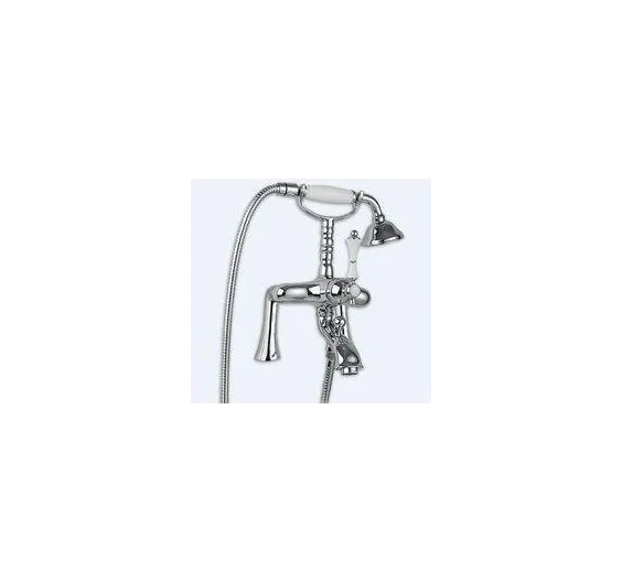 Смеситель Cezares Margot на борт ванны, с ручным душем, хром, ручка белая