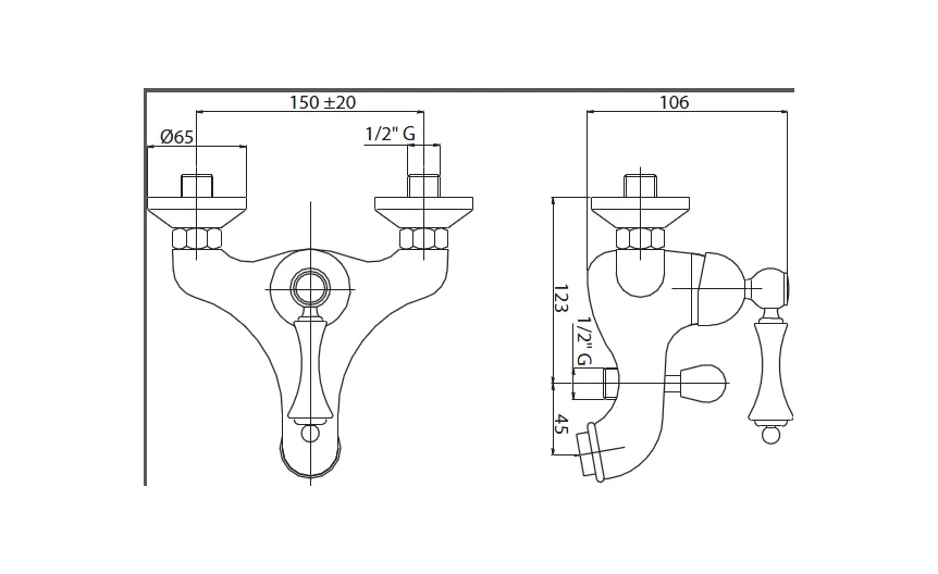 Смеситель Cezares Margot, для ванны и душа, bianco lucido/cromo, ручки bianco lucido/cromo