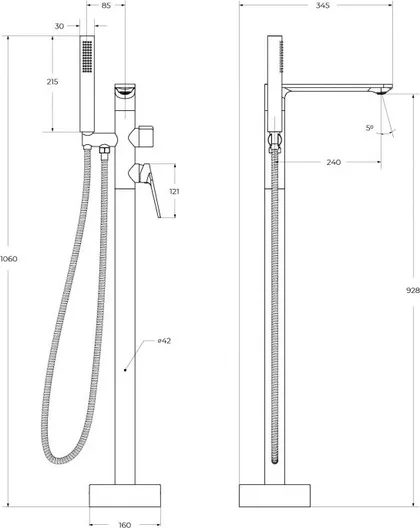 Напольный смеситель для ванны и душа, однорычажный с ручным душем