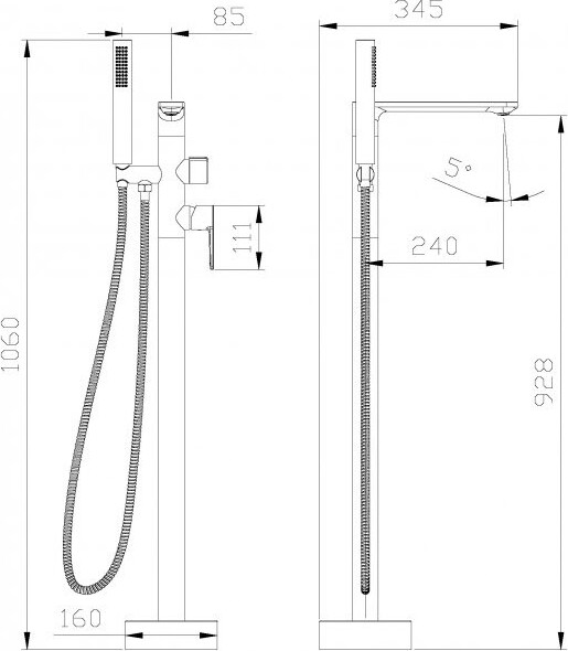 Напольный смеситель для ванны и душа, однорычажный с ручным душем