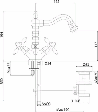 Смеситель CEZARES NOSTALGIA-BBS2-02.на биде с донным клапаном, бронза, ручки бронза