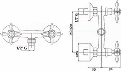 Смеситель Cezares Nostalgia NOSTALGIA-D-03/24-Bi для душа в комплекте с ручным душем, золото, ручки белые УТ-00019371