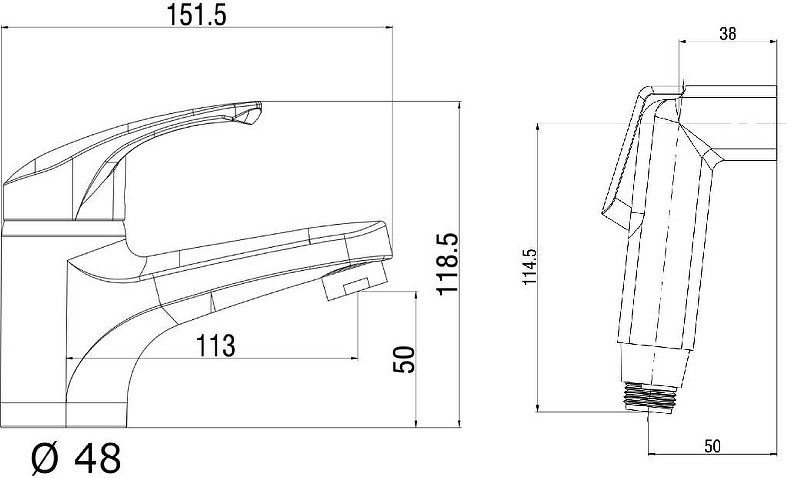 Смеситель OneLife P01-022b для раковины, полимерный, с гигиеническим душем, черный матовый