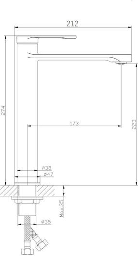 - Высота излива, см: 22.3