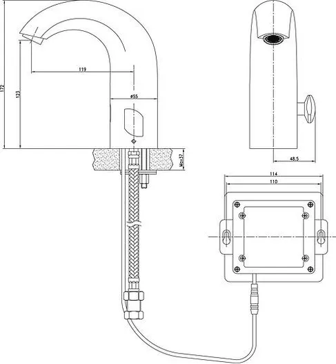 Кран включится, если поднести руки к изливу, а через 90 секунд подача воды прекратится автоматически.