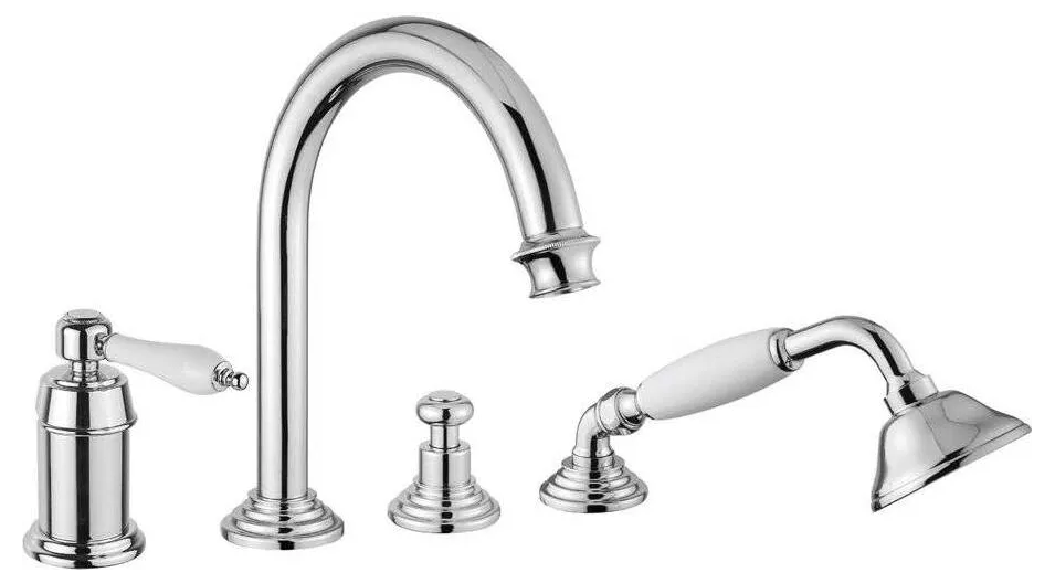 Смеситель Cezares Aphrodite APHRODITE-BVDM-01-Bi на борт ванны с выдвижным душем, хром/белый УТ-00019748