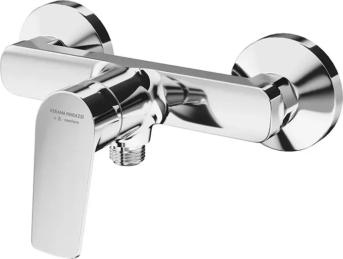 Смеситель для душа NOTA/НОТА — модель, представляющая базовый уровень сантехнической линейки KERAMA MARAZZI от Newform. Смеситель рассчитан на один поток, имеет отверстие для присоединения душевой стойки (приобретается отдельно). Материал — хромированная латунь. Гарантия на изделие — 5 лет.