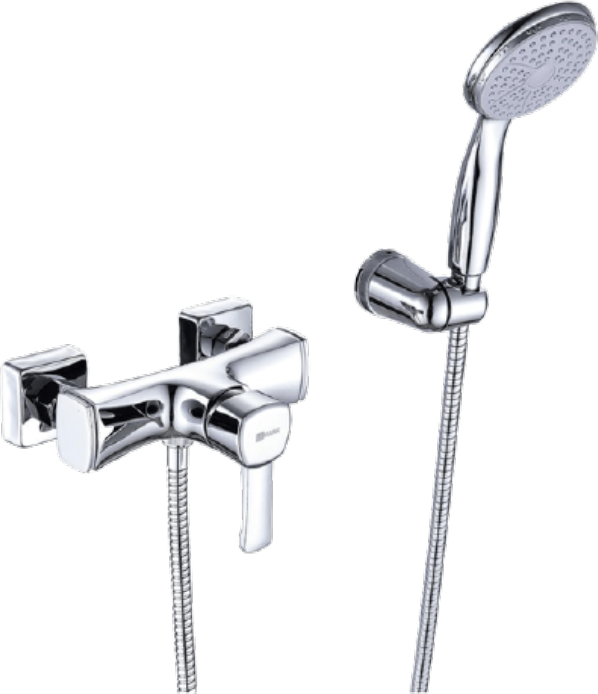 - душевая лейка, держатель душевой лейки, душевой шланг, смеситель