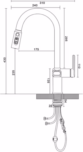 Смеситель Esko Black K15B LED для кухонной мойки, с вытяжным изливом, с дисплеем УТ-00166309
