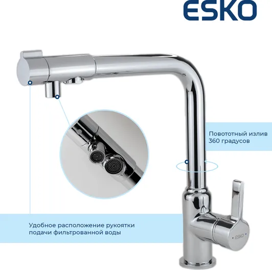 Смеситель Esko K23 для кухонной мойки с подключением к фильтру УТ-00126124