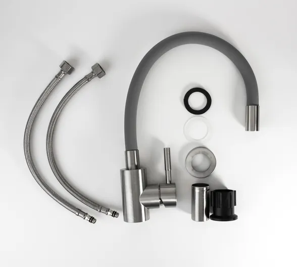Смеситель Esko Snake K44 G гибкий излив, серый, для кухонной мойки