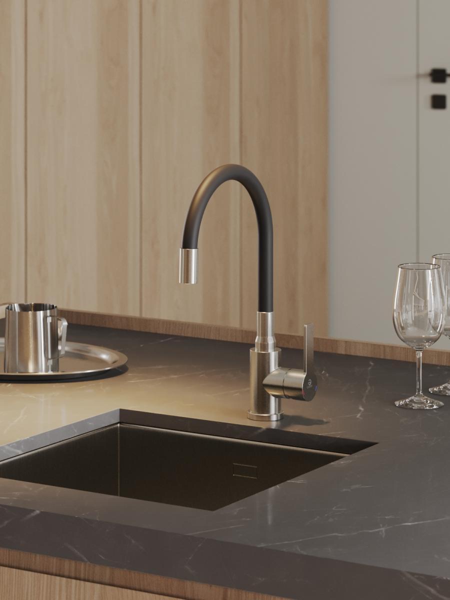Однозахватный смеситель для кухни с поворотным гибким изливом Agger Easy гармонично дополнит интерьер Вашей кухни в современном или традиционном стиле. Фирменный керамический картридж Agger и эргономичный рычаг делают легким управление напором и температурой воды. Корпус изделия изготовлен из высококачественной нержавеющей стали, не подверженной коррозии от длительного контакта с водой. Износостойкое покрытие в цвете матовый сатин нанесено по технологии вакуумного напыления (PVD), на нем незаметны разводы от высохшей воды и отпечатки пальцев. Встроенный аэратор экономит воду и, обогащая струю воздухом, делает ее мягкой без брызг. Смеситель оснащен гибким изливом, что упростит мытье посуды и гигиеническую уборку мойки. В комплекте гибкая подводка (600 мм). Стандарт подводки - 1/2. Гарантия 5 лет.