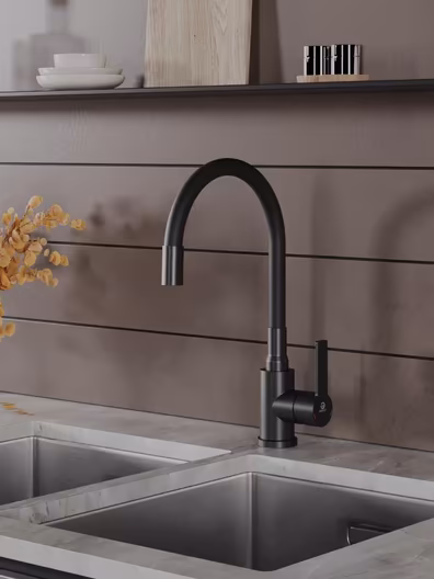 Однозахватный смеситель для кухни с поворотным гибким изливом Agger Easy гармонично дополнит интерьер Вашей кухни в современном или традиционном стиле. Фирменный керамический картридж Agger и эргономичный рычаг делают легким управление напором и температурой воды. Корпус изделия изготовлен из высококачественной нержавеющей стали, не подверженной коррозии от длительного контакта с водой. Покрытие в цвете матовый черный, за которым просто ухаживать мягкой салфеткой, нанесено методом порошковой окраски с многоступенчатой системой подготовки и высокотемпературной обработкой. Встроенный аэратор экономит воду и, обогащая струю воздухом, делает ее мягкой без брызг. Смеситель оснащен гибким изливом, что упростит мытье посуды и гигиеническую уборку мойки. В комплекте гибкая подводка (600 мм). Стандарт подводки - 1/2. Гарантия 5 лет.