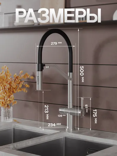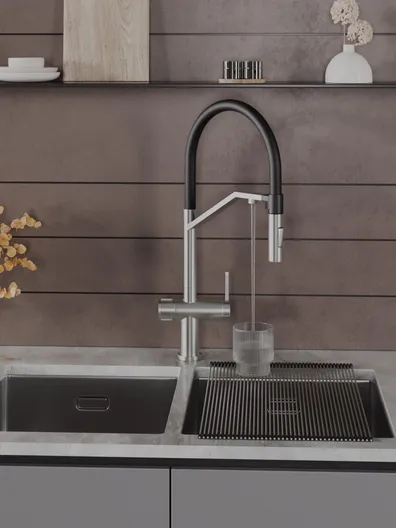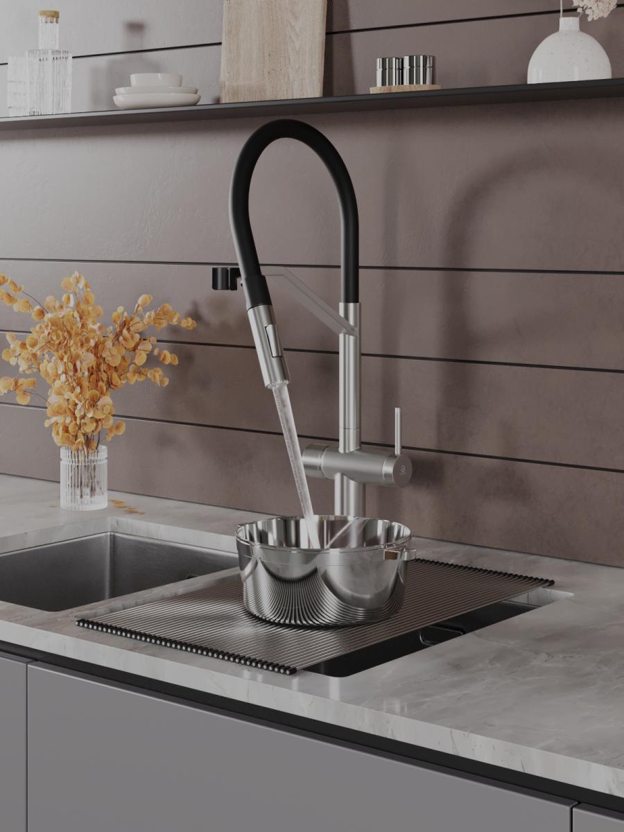 Однозахватный смеситель для кухни с гибким поворотным изливом Agger Elegant с возможностью подключения фильтра – эргономичное решение для тех, кто заботится о своем здоровье и здоровье близких. Фирменный керамический картридж Agger и эргономичный рычаг делают легким управление напором и температурой воды. Корпус изделия изготовлен из высококачественной нержавеющей стали, не подверженной коррозии от длительного контакта с водой. Износостойкое покрытие в цвете матовый сатин нанесено по технологии вакуумного напыления (PVD), на нем незаметны разводы от высохшей воды и отпечатки пальцев. Встроенный аэратор экономит воду и, обогащая струю воздухом, делает ее мягкой без брызг. Смеситель оснащен гибким изливом (2 режима струи), что упростит мытье посуды и гигиеническую уборку мойки. В комплекте гибкая подводка (600 мм). Стандарт подводки - 1/2. Гарантия 5 лет.