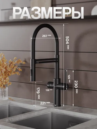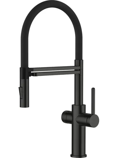 Однозахватный смеситель для кухни с гибким поворотным изливом Agger Elegant с возможностью подключения фильтра – эргономичное решение для тех, кто заботится о своем здоровье и здоровье близких. Фирменный керамический картридж Agger и эргономичный рычаг делают легким управление напором и температурой воды. Корпус изделия изготовлен из высококачественной нержавеющей стали, не подверженной коррозии от длительного контакта с водой. Покрытие в цвете матовый черный, за которым просто ухаживать мягкой салфеткой, нанесено методом порошковой окраски с многоступенчатой системой подготовки и высокотемпературной обработкой. Встроенный аэратор Neoperl экономит воду и, обогащая струю воздухом, делает ее мягкой без брызг. Смеситель оснащен гибким изливом (2 режима струи), что упростит мытье посуды и гигиеническую уборку мойки. В комплекте гибкая подводка (600 мм). Стандарт подводки - 1/2. Гарантия 5 лет.