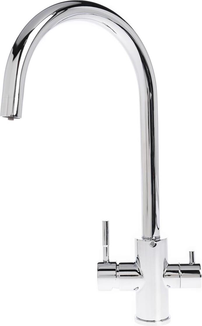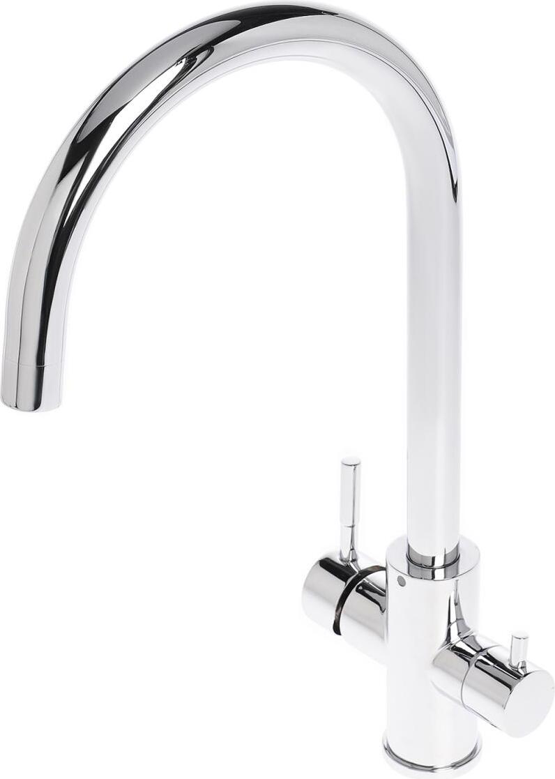 Смеситель Agger Zest A0700700 с возможностью подключения фильтра – эргономичное решение для современной кухни. Он изготовлен из латуни с хромовым покрытием, что обуславливает его надежность и долговечность. Два отдельных канала исключают смешивание водопроводной и фильтрованной воды, управление температурой и напором осуществляется двумя рычагами. Высокий поворотный излив с аэратором обеспечивает комфорт при мытье посуды и предотвращает разбрызгивание. Для поддержания зеркального блеска поверхность достаточно вытереть насухо мягкой салфеткой.
