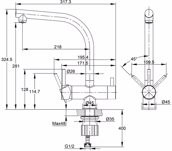 - возможность присоединения фильтра для воды, совмещенный излив для фильтра