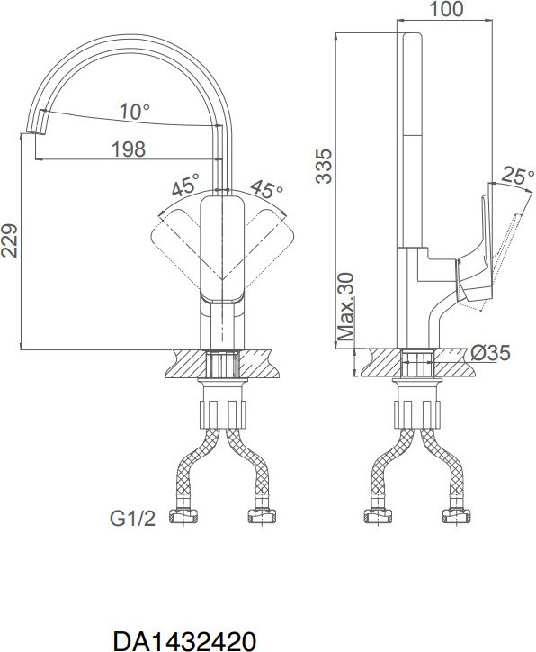 Смеситель D&K Berlin.DA1432420 для кухонной мойки, антрацит