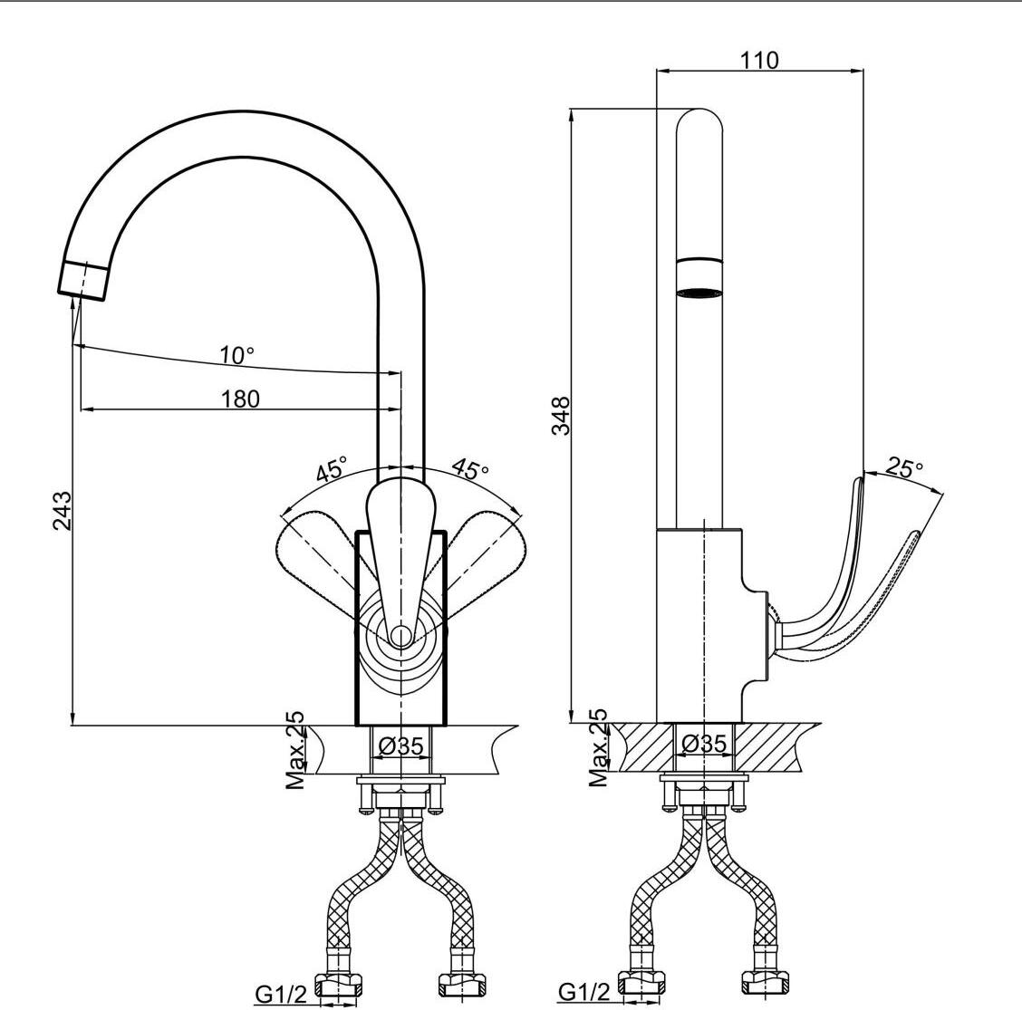 - Высота излива, см:24.3