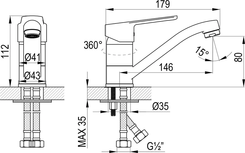 - Высота излива, см:
