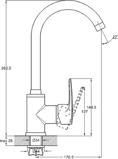 Смеситель G-lauf ZAR4-B181 для кухни, без гибкой подводки