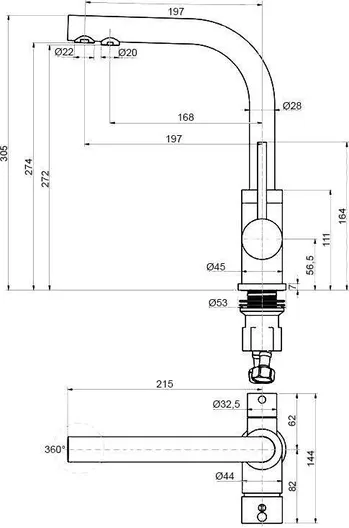 - Поворотный излив: