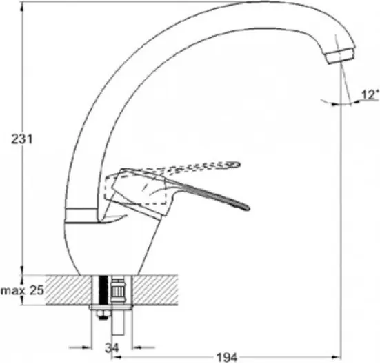 - Длина излива, см:19.4