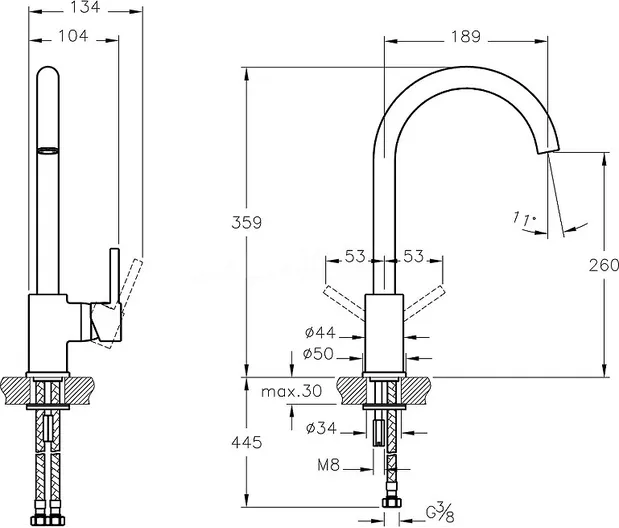 - Высота излива, см:26