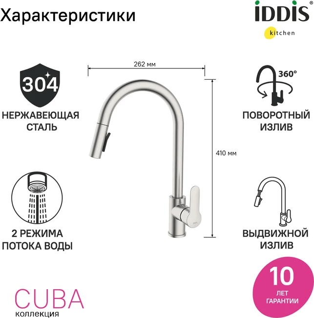 Смеситель IDDIS Cuba CUBSTP0i05 для кухонной мойки, сталь