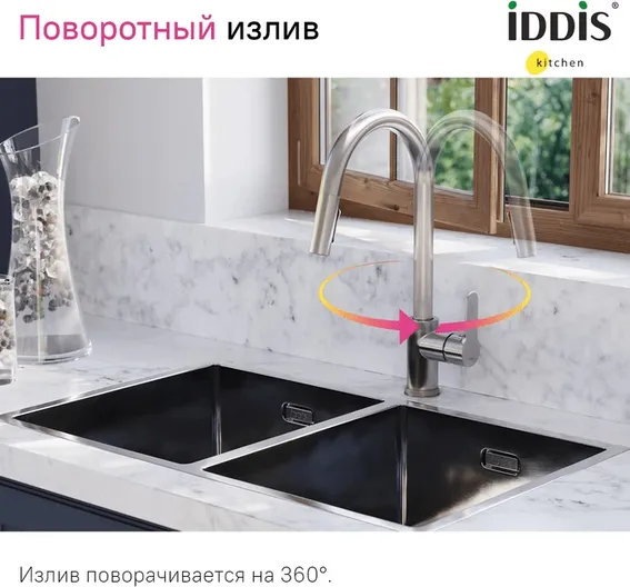 Смеситель IDDIS Cuba CUBSTP0i05 для кухонной мойки, сталь УТ-00169692