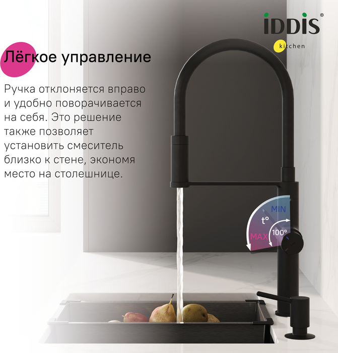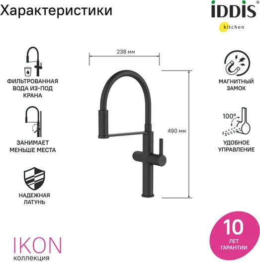 Смеситель Iddis Ikon IKNBLFFi05 для кухонной мойки черный матовый УТ-00190327