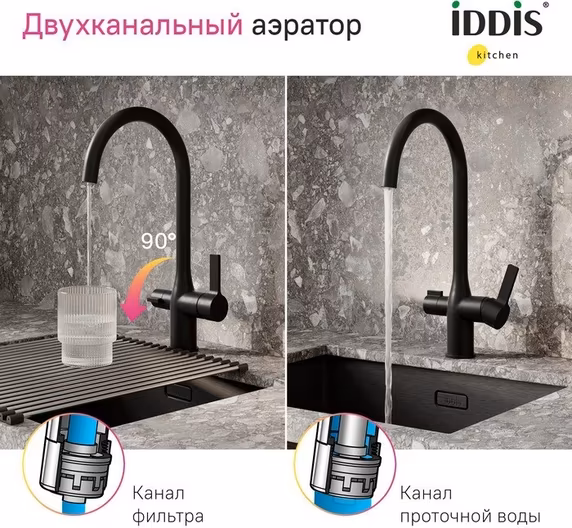 Смеситель IDDIS Pure PURBLFJi05 для кухонной мойки, черный матовый УТ-00169693