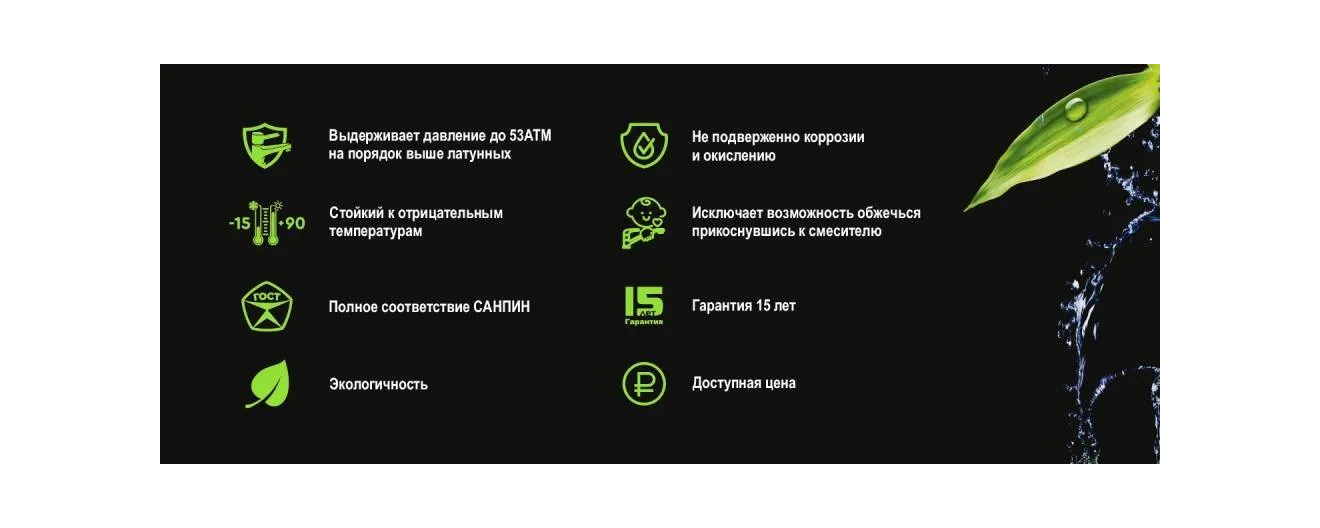 - Смеситель выполнен из высокотехнологичного полимера по запатентованной технологии