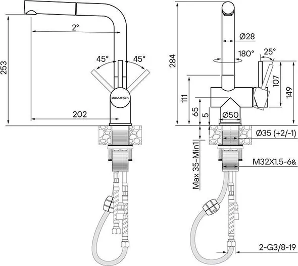 - Выдвижной излив: