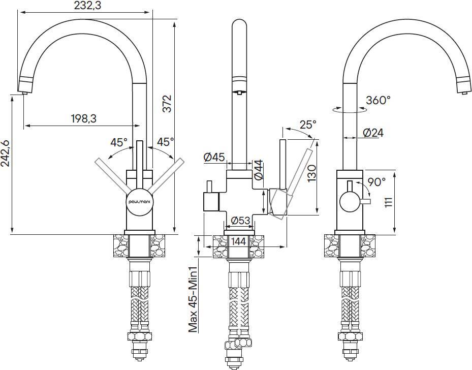 - Поворотный излив: