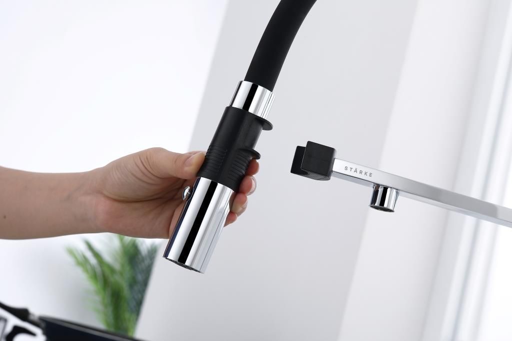 Главой особенностью данного смесителя является надёжная фиксация: крепление гибкого излива с помощью магнитного держателя. Надежный механизм быстро зафиксирует излив стоит только поднести его к держателю.