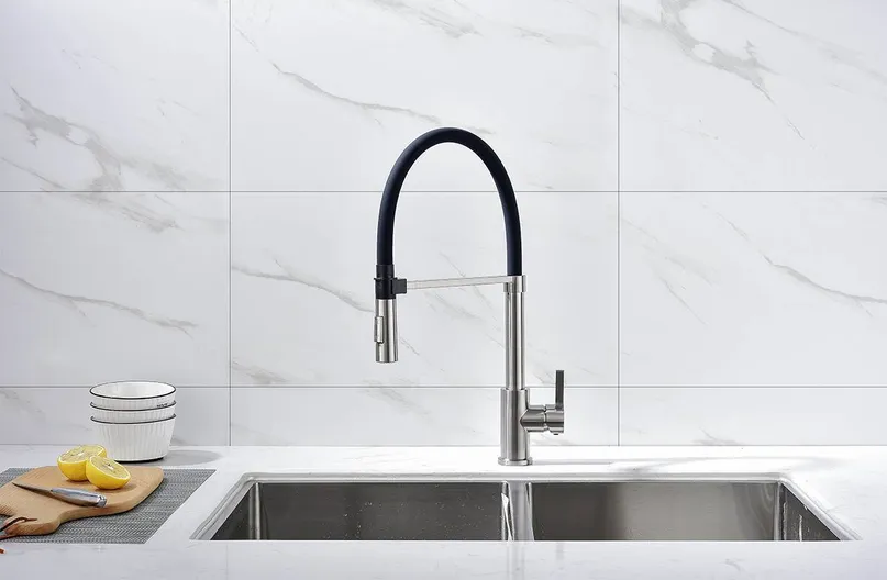 - гибкий излив, легкое очищение
