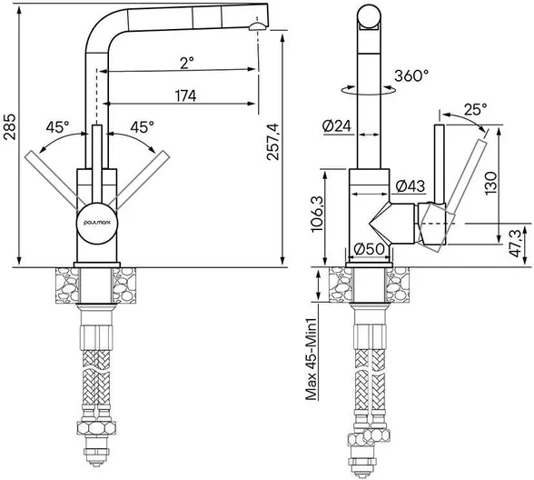 Смеситель Paulmark Honner Ho212018-401TB для кухонной мойки, антрацит