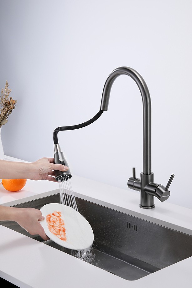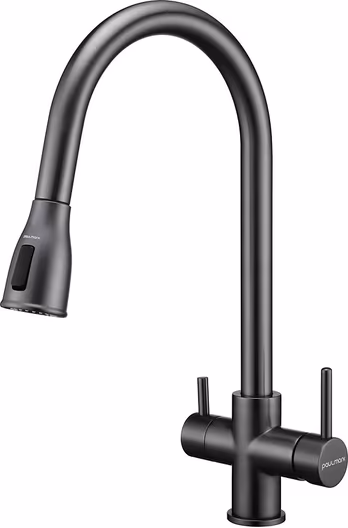 Смеситель Paulmark LANGE под фильтрованную воду с выдвижным шлангом,La214212-GM, вороненая сталь