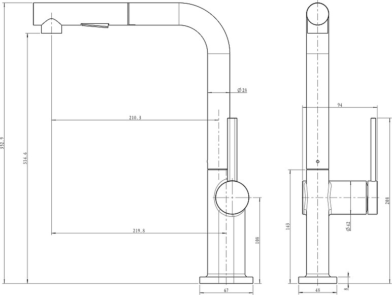 - Выдвижной излив: