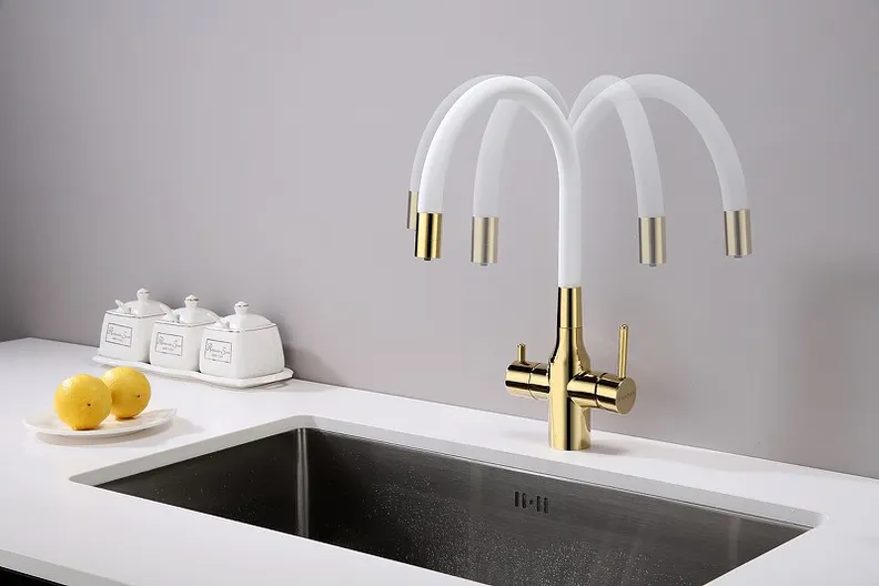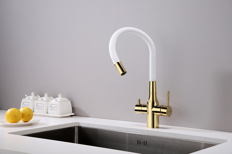 Смеситель Paulmark Salix Sa213419-Gw для кухонной мойки, золото белый УТ-00145324