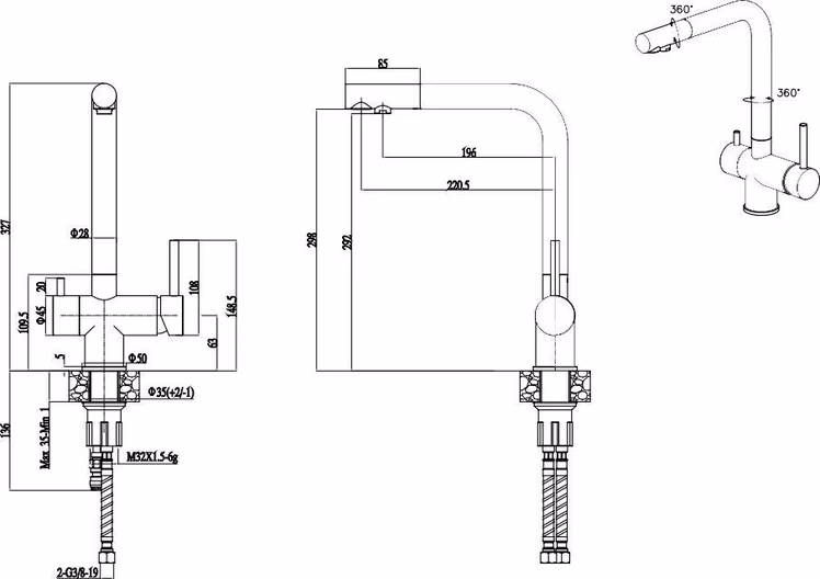 - Поворотный излив: