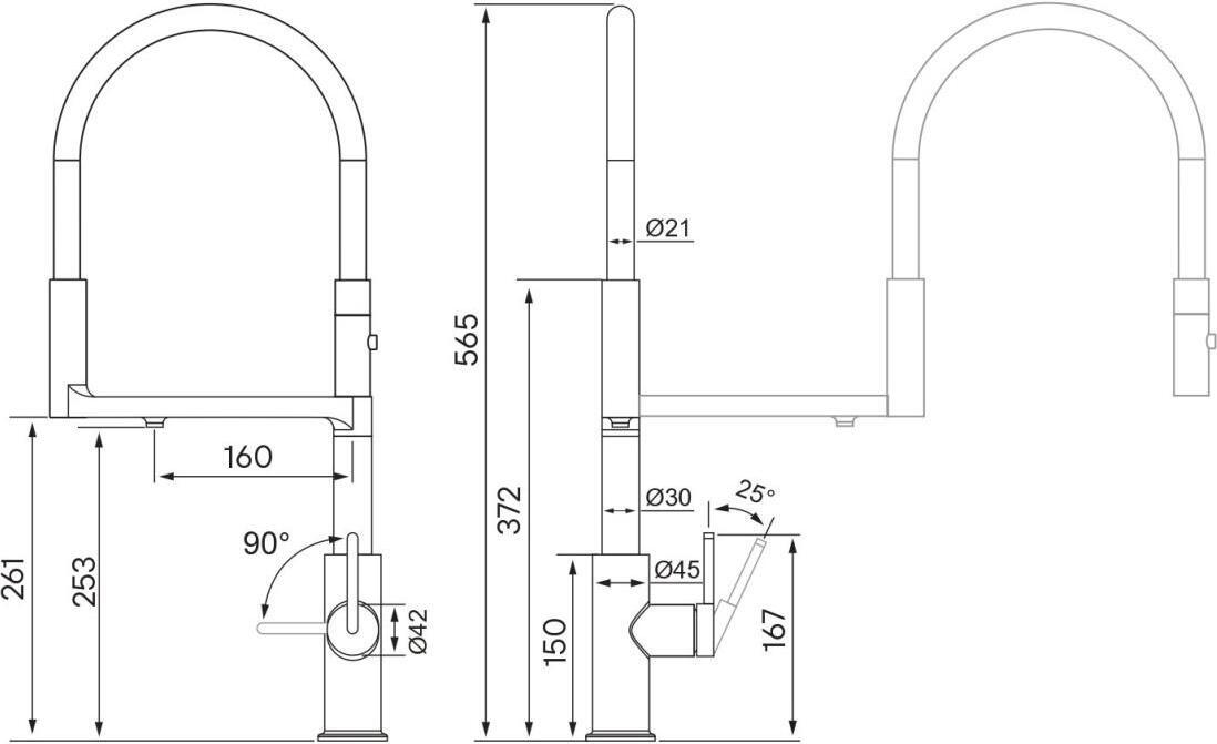 - Длина излива, см: 25.5