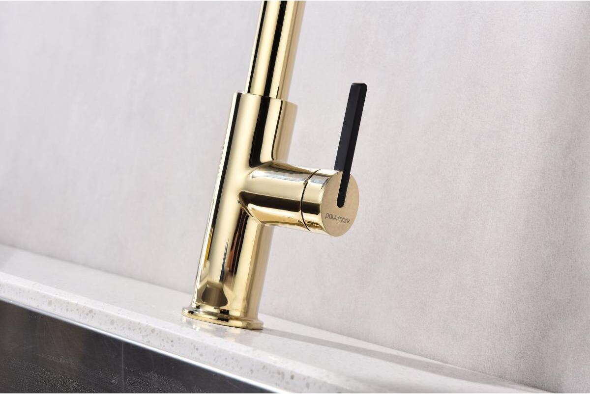 Смеситель Paulmark Tornado To213402-G для кухонной мойки, золото