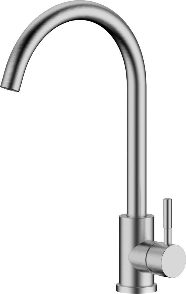 Смеситель для кухни с высоким поворотным изливом RUSH Melos арт. SUS1101-22 с металлической ручкой изготовлен из нержавеющей стали SUS304 и имеет рычажное управление.